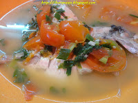 Buktinya, RakaĀ dan Deva, lahap benerrr menyeruput kuah sop dan mengganyang ikan, sampai hanya tersisa tulang belulang dan seledri ;). Pedasnya mantep, ikan lumayan mengenyangkan untuk 1 orang, dan dagingnya walau amis, tapi lembut dan gemuk.
