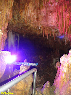 Wow cantiknya di dalam gua ini. Ada lampu warna warni. Bentuk2 di dalam gua ini sangat cantik.