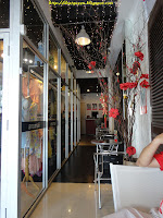 Sepintas diliat dari luar, tempatnya kecil, dan memanjang ke belakang. Tapi ternyata cafe ini dibangun 2 tingkat, yang lebih luas di atasnya. Cuma agak sumpek sih kalo kubilang, jadi kita lebih milih duduk di lantai dasar yang biar sempit tapi terbuka keluar.