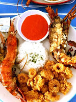 1 porsi 500gr lobster ditemani dengan sepiring nasi yang porsinya pas, dan calamari plus sambel yang bisa dipilih, antara garlic sauce atau matah, sambel khas Bali dengan irisan bawang, cabe dan perasan jeruk, menjadikan perpaduan rasa yang maknyuusss banget-banget ;).