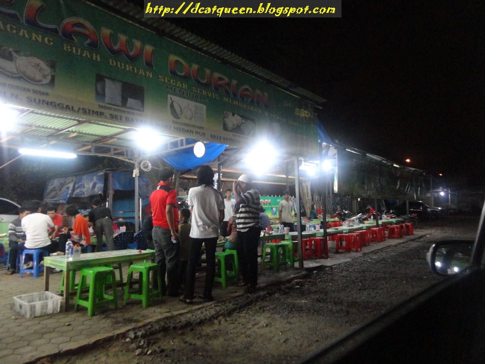 Usaha terakhir, mobil kami arahkan ke Sunggal. Di sana ada beberapa penjual durian yang sama seperti durian Ucok. Kali ini Dewi Fortuna berbaik hati, Warung PELAWI DURIAN ternyata masih buka ;).