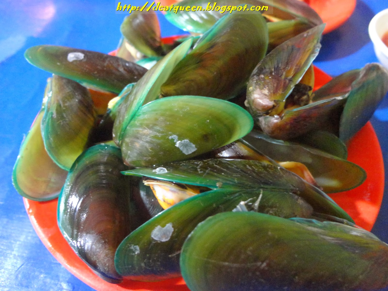 Udang dan kerang rebus, dihidangkan panas-panas, dengan saus yang berbeda untuk masing-masing. Porsinya pas sebagai makanan cemilan. Rasa saus juga enak. Segar dengan campuran parutan nenas dan kacang tumbuk yang gurih.