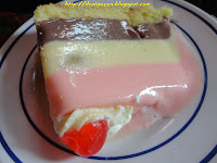 Ystaart ( Rp 17,000). Lebih sesuai dibilang Ice cream cake ;). Dasarnya memakai bolu setinggi 1.5 cm, lalu bagian atas terdiri dari 3 lapis es krim, coklat, vanilla, dan strawberry. Not bad, lumayan suka rasanya. Potongan slice juga lumayan gede.