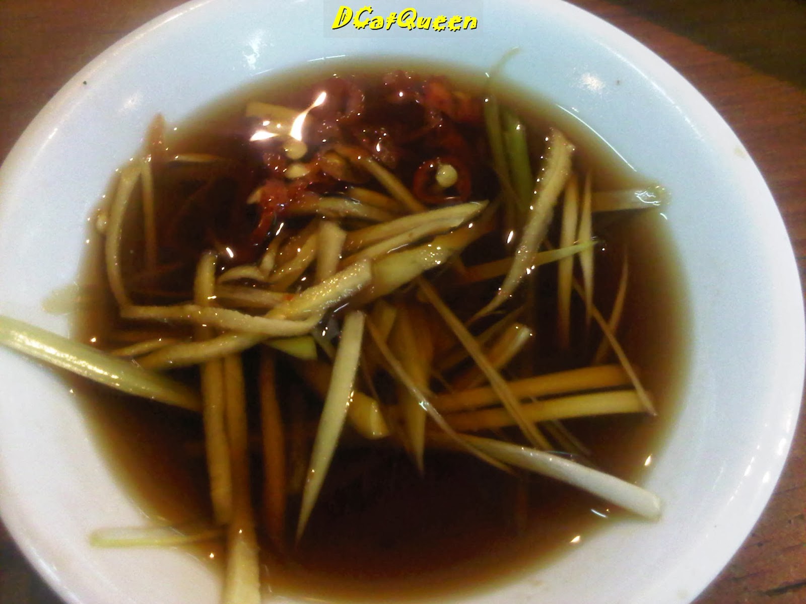 Kecap asin dengan irisan jahe, rawit dan daun bawang