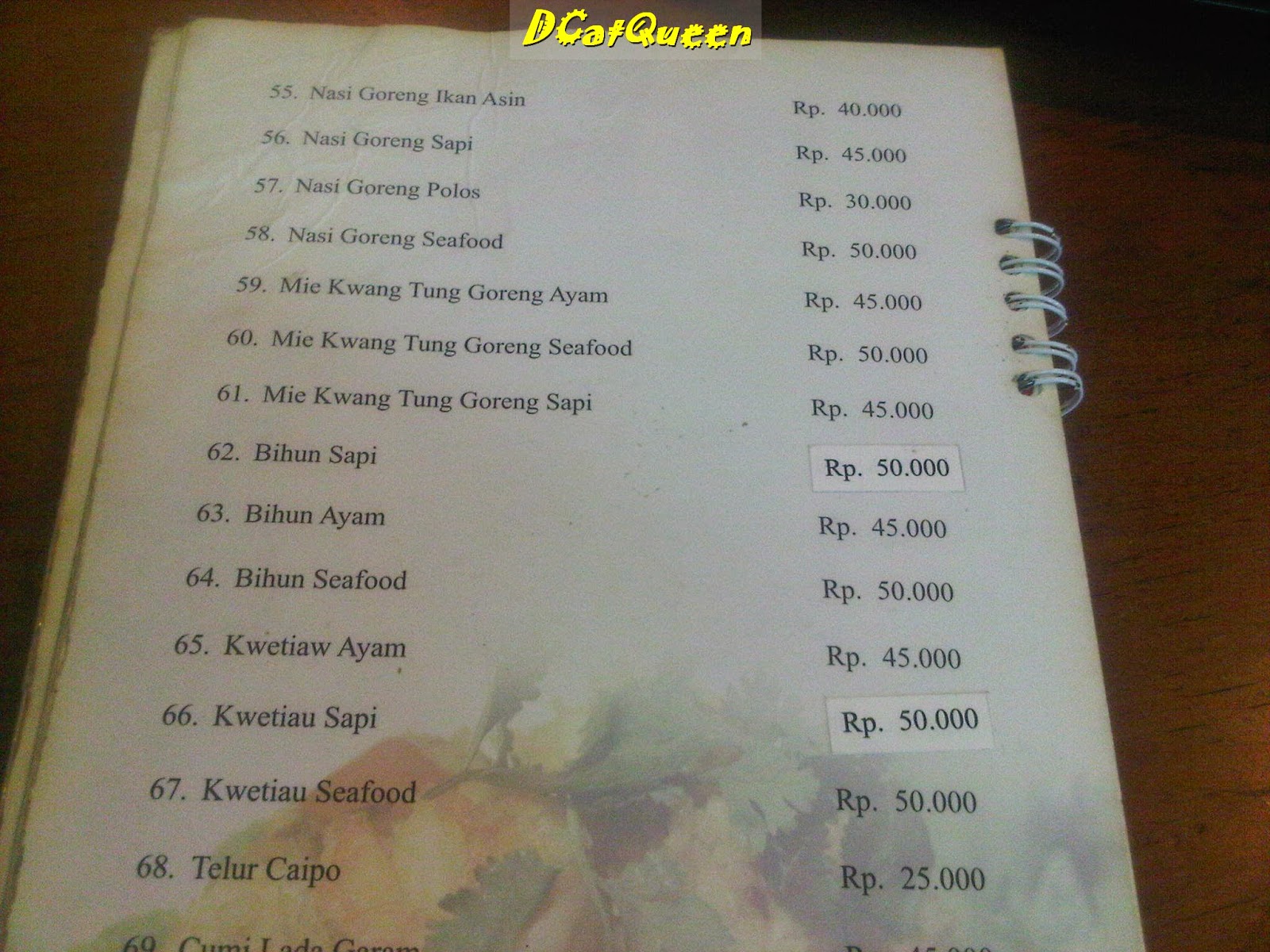 Buku menu dibagikan, dan sepakat memilih, Bubur Seafood, Bihun Goreng Ayam, Kwetiaw Goreng Seafood, Soft drink dan Milk Tea untukku.