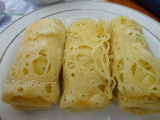 Kami sampai jam 8 pagi, dan kedai ini udah ramai dengan orang-orang yang singgah sebelum melanjutkan perjalanan. Melirik ke meja sebelah, kedai ini juga menjual Roti Jala Kari Ayam ternyata ^o^!! Makanan langka yang susah aku temui, kecuali di restoran-restoran Aceh. Kalau pun ada yang menjual, seperti yang aku bilang di atas, rasanya beda!