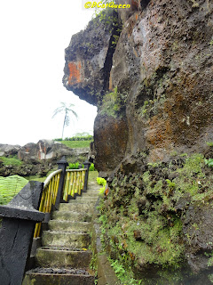 Tangga batunya ga curam dan lumayan bagus. Ditata sedemikian rupa, sehingga semua pengunjung bisa menikmati pemandangan hijau di sekeliling. Kolam ikan berbentuk hati dengan ikan-ikan gemuk yang berenang, air mancur yang memancar deras dan tinggi, serta air terjun kecil yang mengalir langsung ke sungai di bawah.