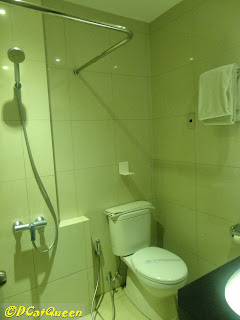 Kamar mandinya kecil, tapi air panas dan dingin menyembur deras dari shower. Itu penting banget. Paling males deh mandi dengan shower yang cuma bisa ngeluarin air seencrit-encrit begitu ;p. Mending pake gayung kalo begitu mah.