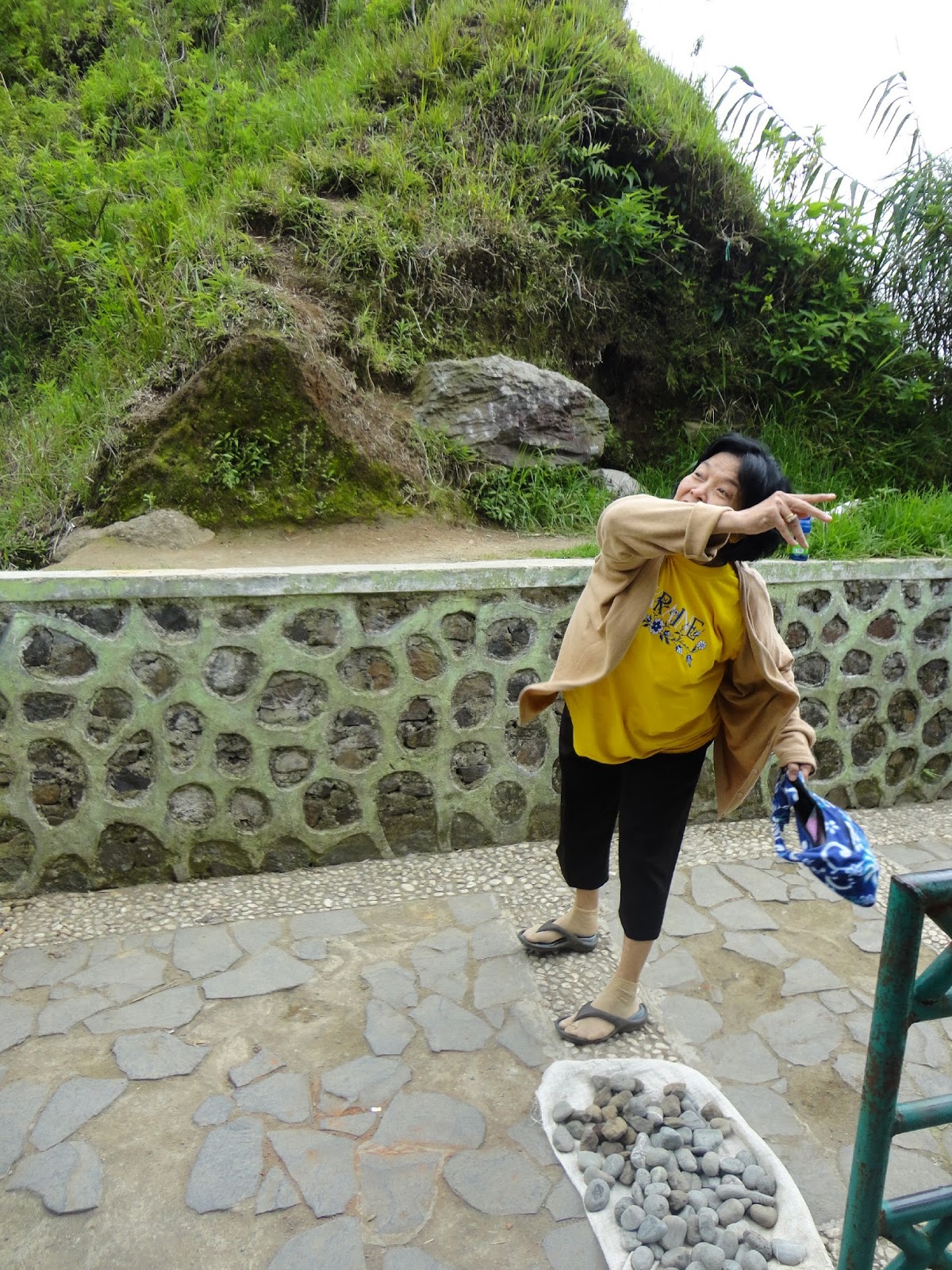 Iya, mereka menjual batu seharga Rp 500 per butir, untuk dilempar ke tengah-tengah sumur. Katanya nih, siapa yang bisa melempar tepat ke tengahnya, akan terkabul apa yang diinginkan ;p Hahahahaha, aku ga percaya hal-hal klenik begitu, tapi untuk mencoba melempar batu ke tengah, kenapa ga??