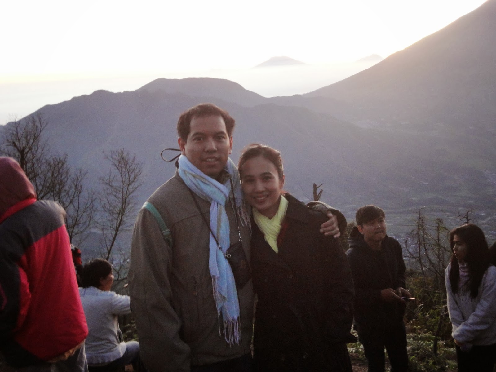 Sesampai di atas, semburat sinar matahari yang mulai naik, langsung bikin kami berdua yang tadinya ga bisa berdiri tegak, melek dan merinding melihat ciptaan Nya ;).