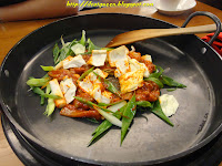 Galbi ayam dan seafood, ternyata dimasak di meja langsung. Jadi dalam sebuah pan, sudah diisi macam-macam sayuran seperti kol, sawi, kentang dan juga seafood cumi, kepiting dan ayam, dituang saos merah Gochujang khas Korea yang sering dipake sebagai campuran dalam masakannya.
