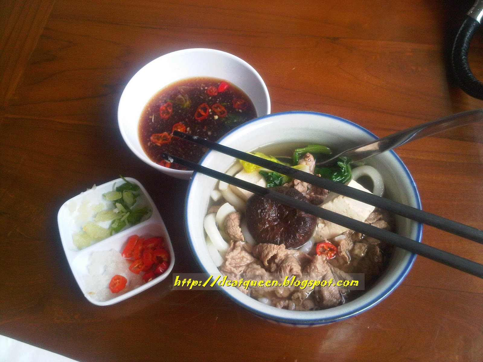 Cara makan Shabu ini, semua bumbu-bumbu tadi dicampur ke dalam saus Ponzu, lalu aduk. Kemudian ambil mie, ato daging wagyu dari mangkok yang lebih besar, celupkan kedalam saus Ponzu, dan makan ;).